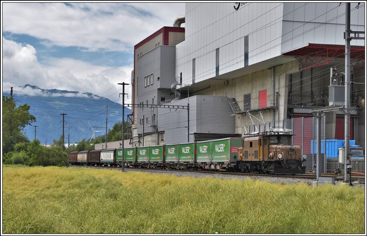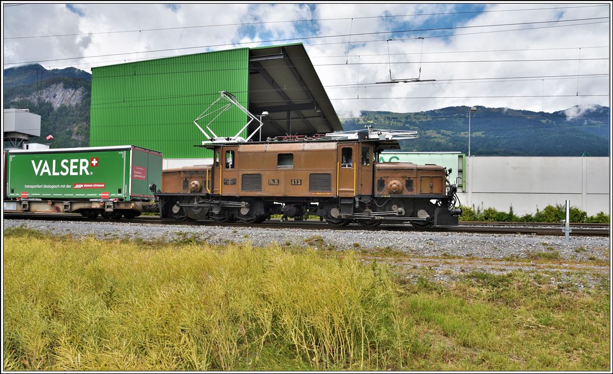 Für Personalschulungsfahrten auf dem Krokodil eignet sich der kurze Umlauf nach Ilanz. 5732 mit Ge 6/6 I 415 bringt Valser Mineralwasser ins Verteillager in Untervaz-Trimmis. (05.06.2020)