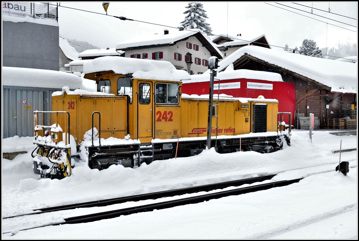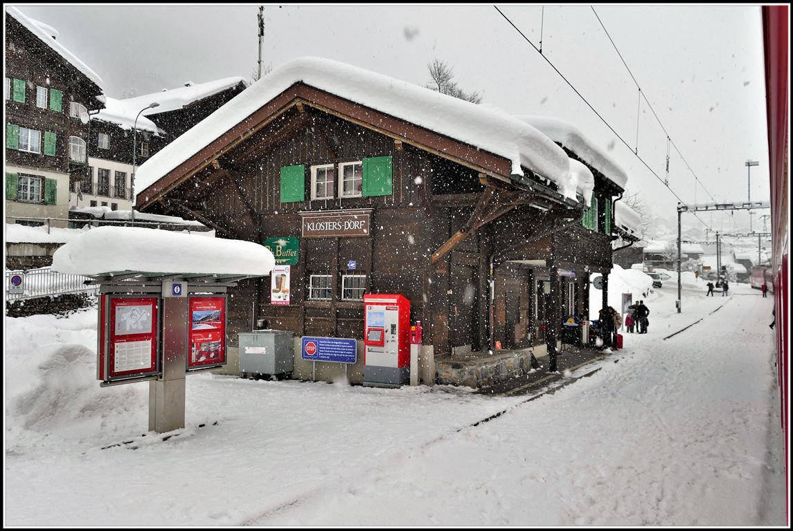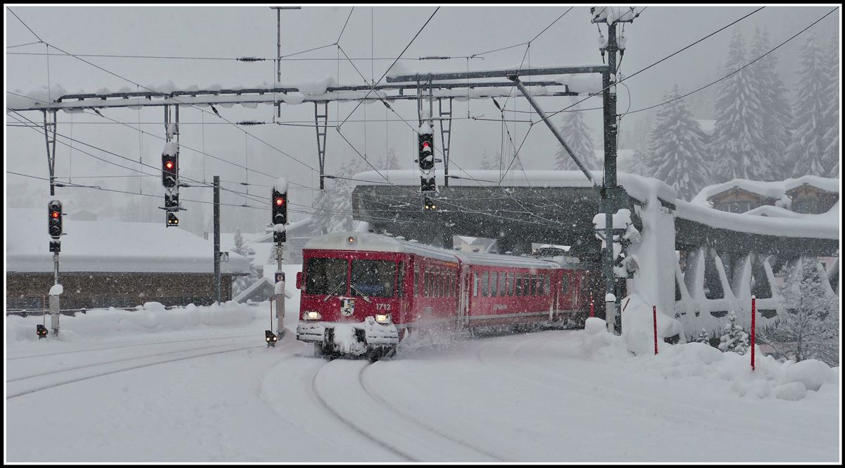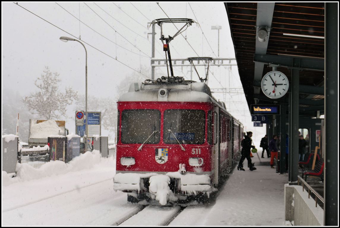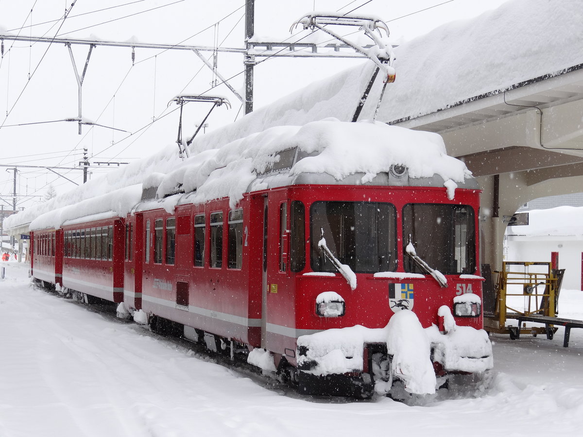 Rhb Ge 4/4 II Nr. 617 „LGB“ in Davos-Platz morgens um 7:28 Uhr am 20.09.2018. Der Bt direkt hinter der Lok wurde an dem Tag erstmalig planmäßig im Zug eingesetzt. Die Zulassung der Steuerwagenfunktion war damals noch nicht gegeben, daher der Einsatz als „normaler“ Wagen mit Niederflureinstieg und Behindertentoilette. Kurt Wolfert