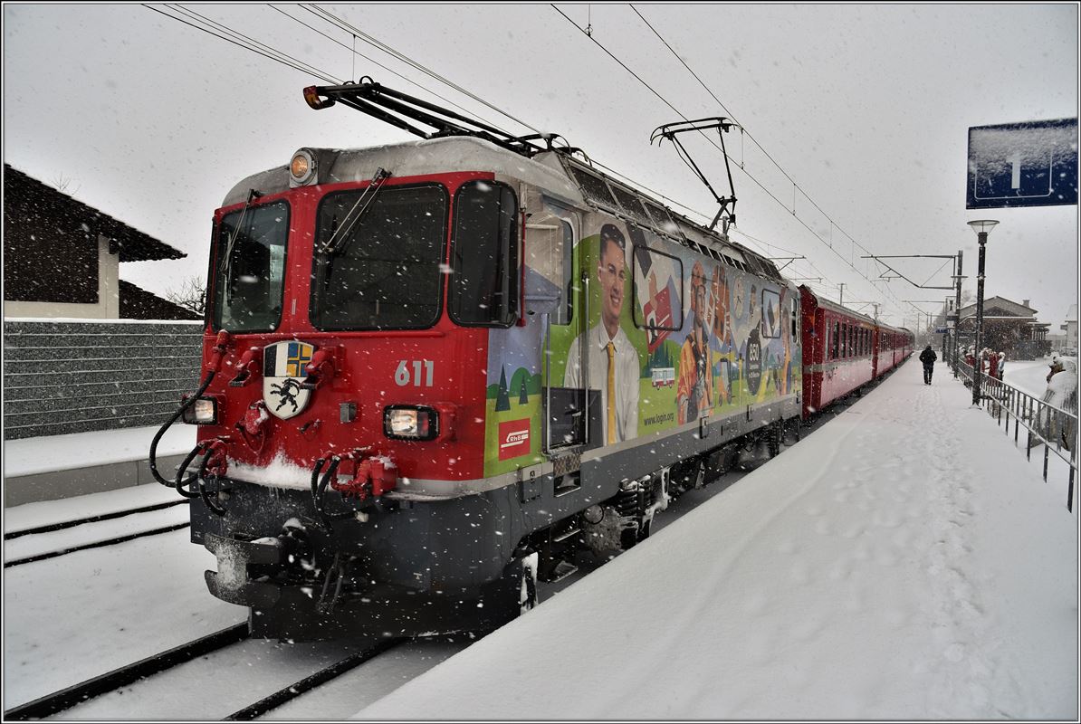 RE1045 mit Ge 4/4 III 650  Seewis-Valzeina  in Landquart. Parkgebühr bezahlt? (14.07.2018)