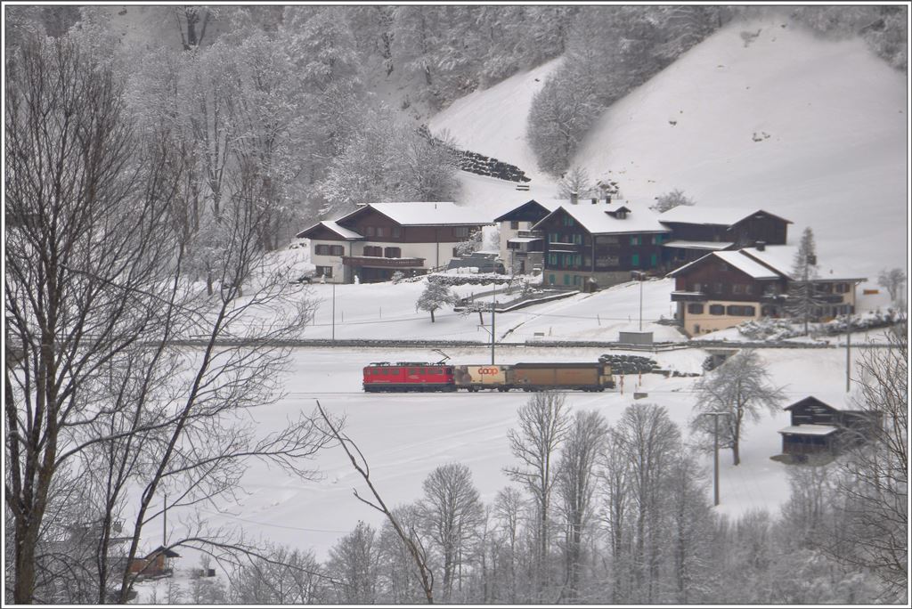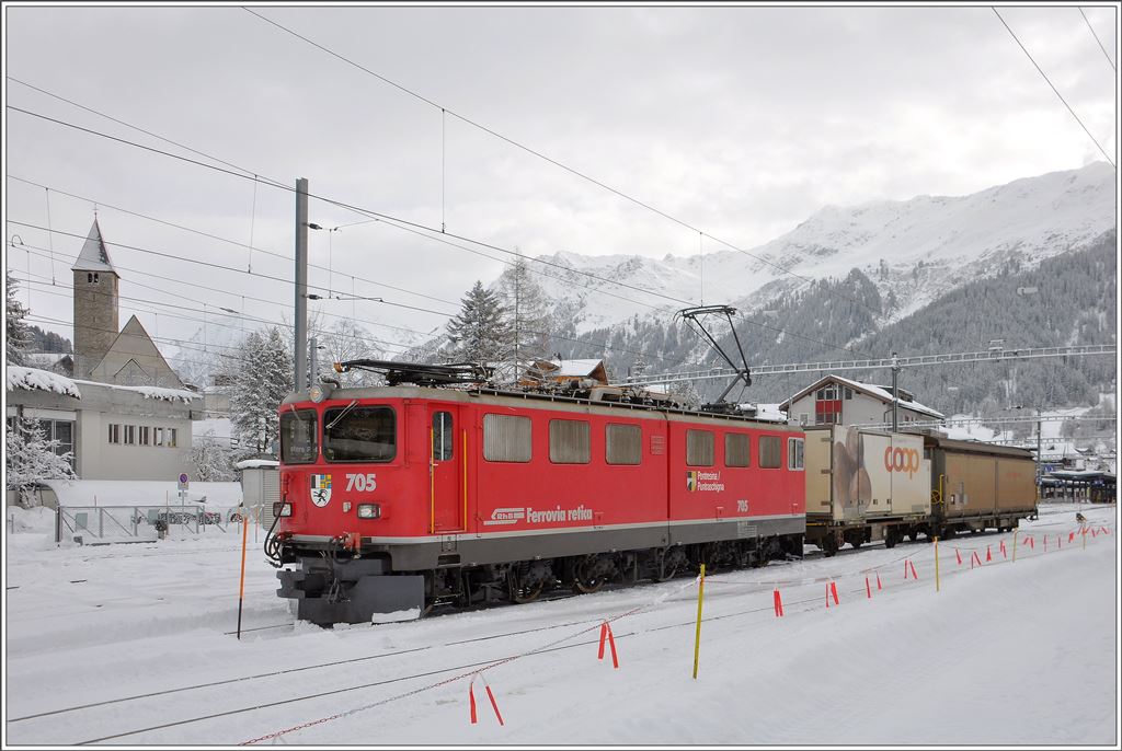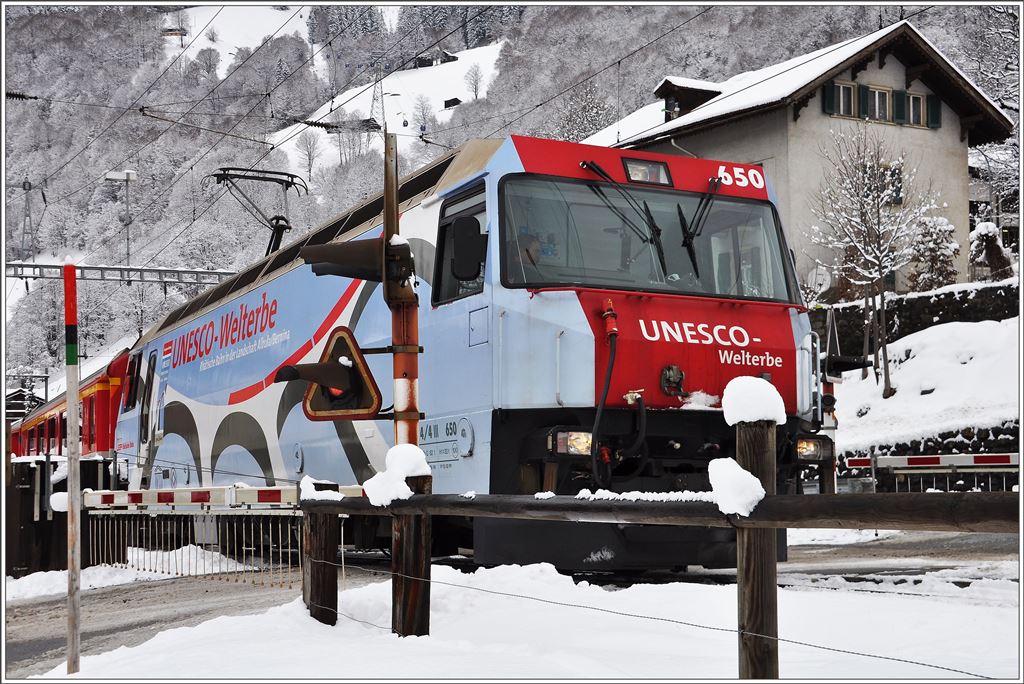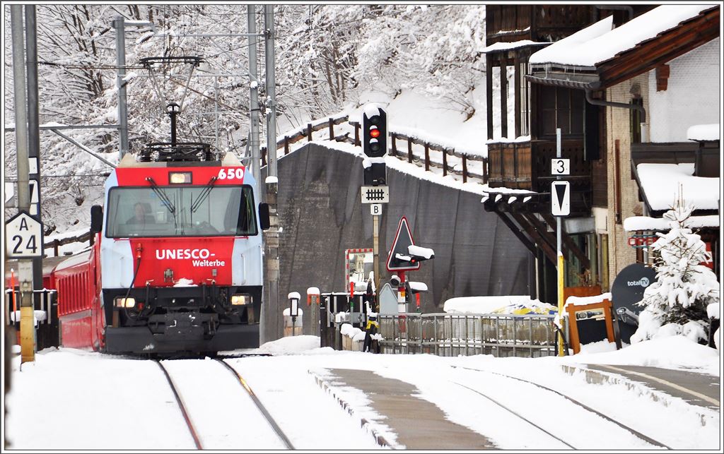RE1335 mit Ge 4/4 II 612 "Thusis" nach St.Moritz in Klosters Dorf beim Übergang zur neuen Doppelspur Richtung Klosters Platz. (04.02.2016) Herbert Graf