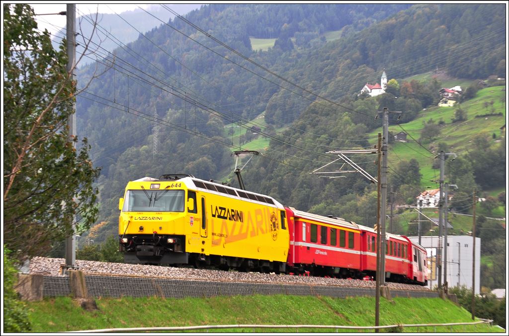RE1241 nach Scuol/Tarasp mit Ge 4/4 II 633 "Zuoz" verlässt Landquart. Ob sich der Lokführer an die Geschwindigkeitsbegrenzung hält? :-) (01.10.2014) Herbert Graf