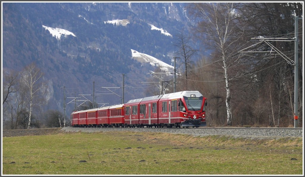 RE1228 bei Klosters Dorf. Die RhB dürfte mit diesen Sonnenkollektoren noch nicht betrieben werden, aber zumindest die Melkmaschinen. (26.06.2010) Herbert Graf