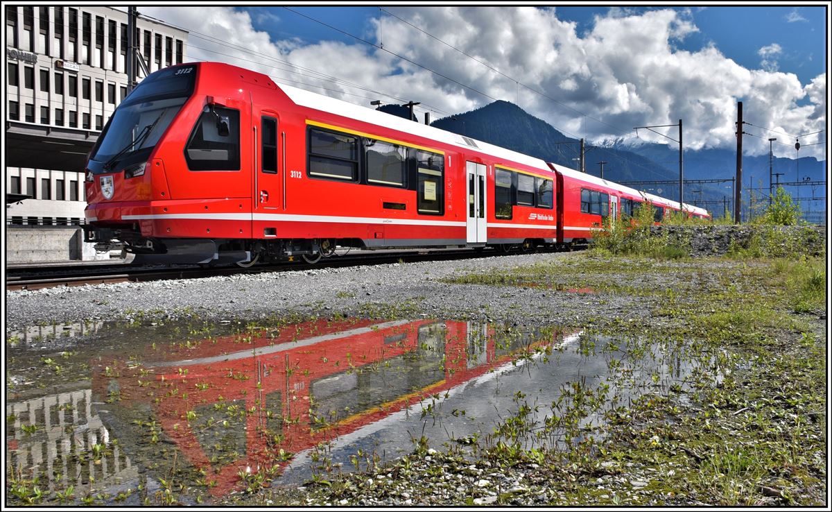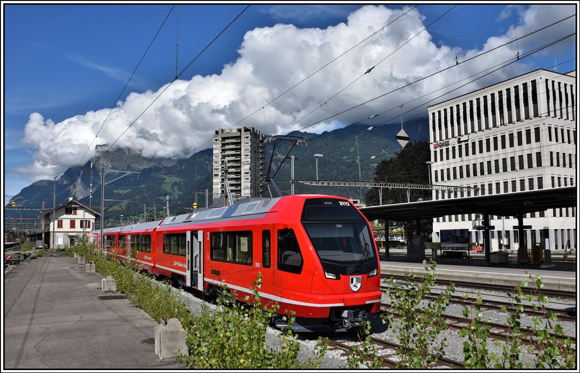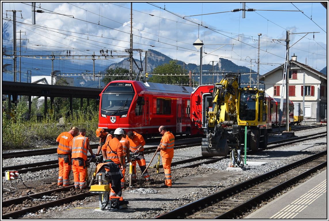 Tm 2/2 84 mit Schotterwagen auf der neuen Brücke über die Landquart, die einerseits die Doppelspur Richtung Malans aufnimmt und andererseits als Zufahrt zum neuen Bahndienstzentrum dient. (29.08.2019) Herbert Graf
