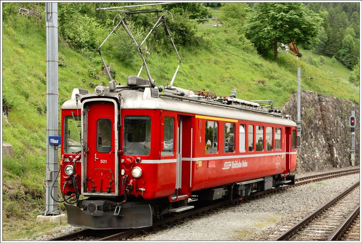 UNESCO Welterbetag auf der RhB. ABe 4/4 501 pendelt zwischen Filisur und Alvaneu mit Halt bei der Aussichtsplattform Nord. Filisur. (12.06.2016)