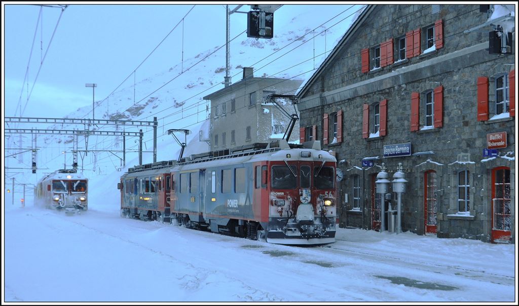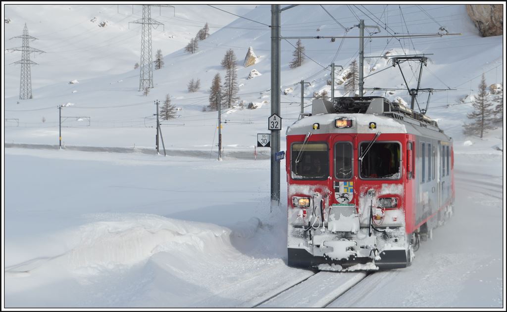 Triebwagen 53 und ** mit dem R 1629 (St. Moritz-Poschiavo) bei Lagalp 8.3.14