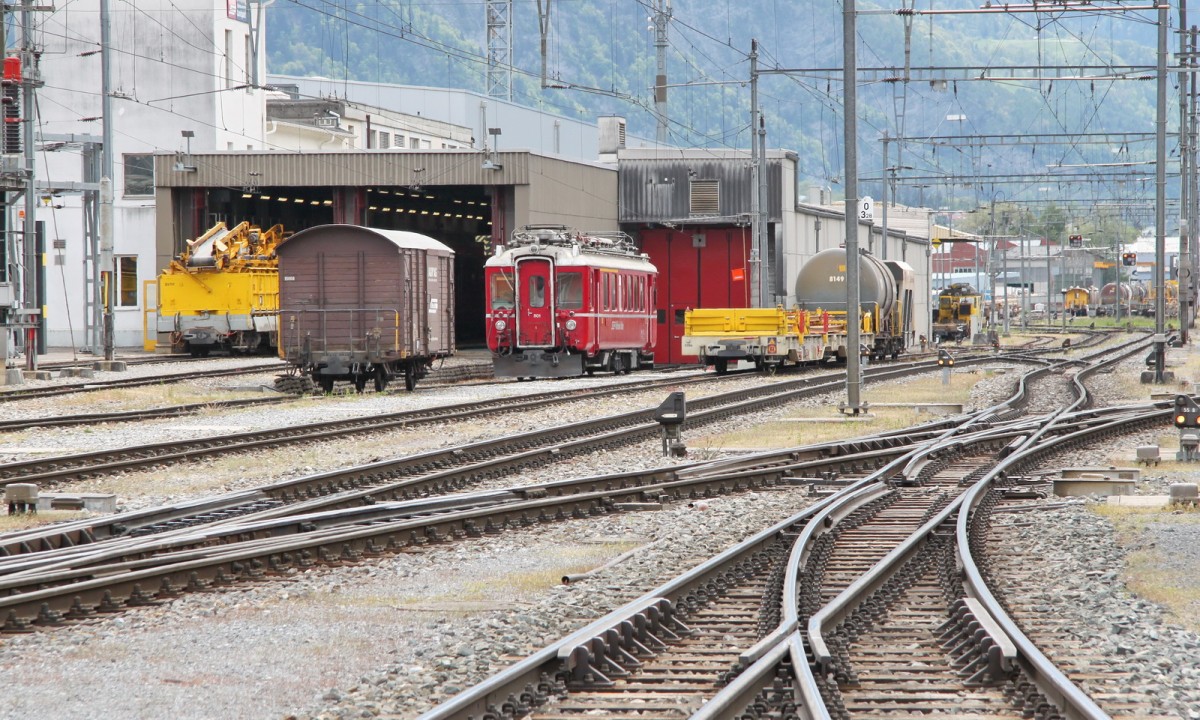 RhB - Triebwagen Be 4/4 516 und Be 4/4 513 im Bahnhofsareal in Landquart am 10.05.2014