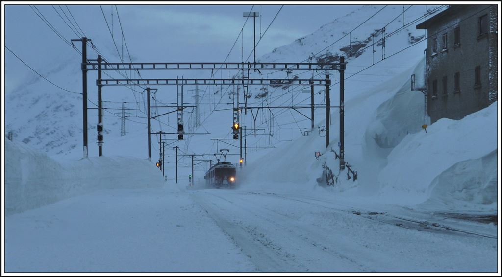 Ein unbekannter Alegra mit dem R 1644 (Campocologno-St. Moritz) bei Lagalp 8.3.14