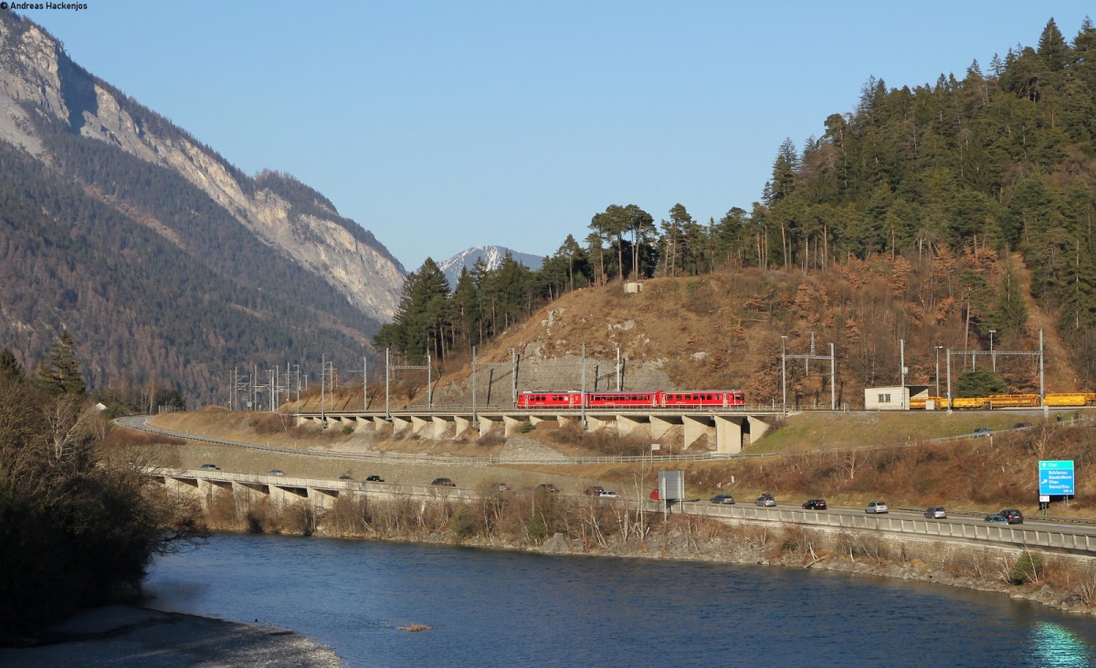 Rhb 3506 mit dem RE 1327 (Landquart-St. Moritz) bei Bever 8.3.14