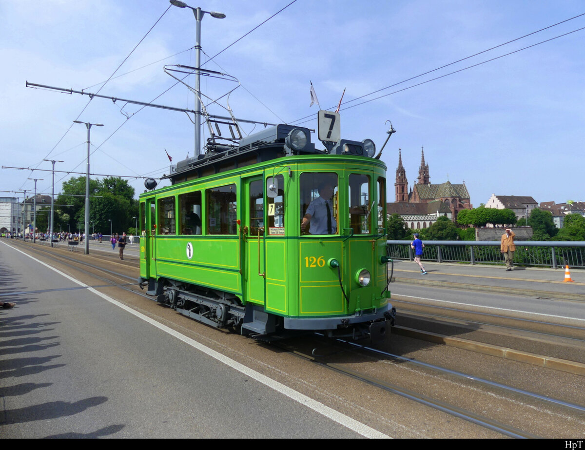 BVB - Oldtimer Tram Ce 2/2  126 unterwegs an der Tramparade in der Stadt Basel am 22.05.2022