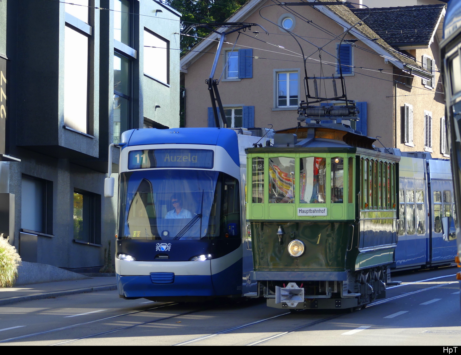 VBZ - Be 5/6 3022 unterwegs auf der Linie 11 und Ce 2/2 1 vom Verein Tram-Museum Zürich unterwegs auf der Museums Linie in der Stadt Zürich am 2024.10.27