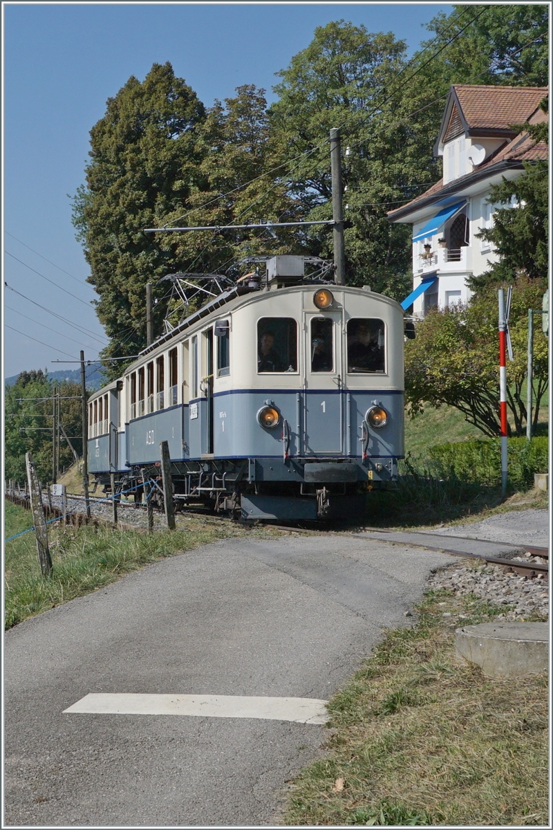 Les chemins de fer disparus - Die verschwundenen Bahnen (LLB 1915 - 1967) Der Leuk Leukerbad Bahn (LLB) Triebwagen mit der Anschrift ABFe 2/4 N° 10 der Blonay Chamby Bahn ist mit passenden Wagen als Museumszug N° 1065 beim B-C Einfahrsignal von Blonay auf dem Weg nach Chaulin.