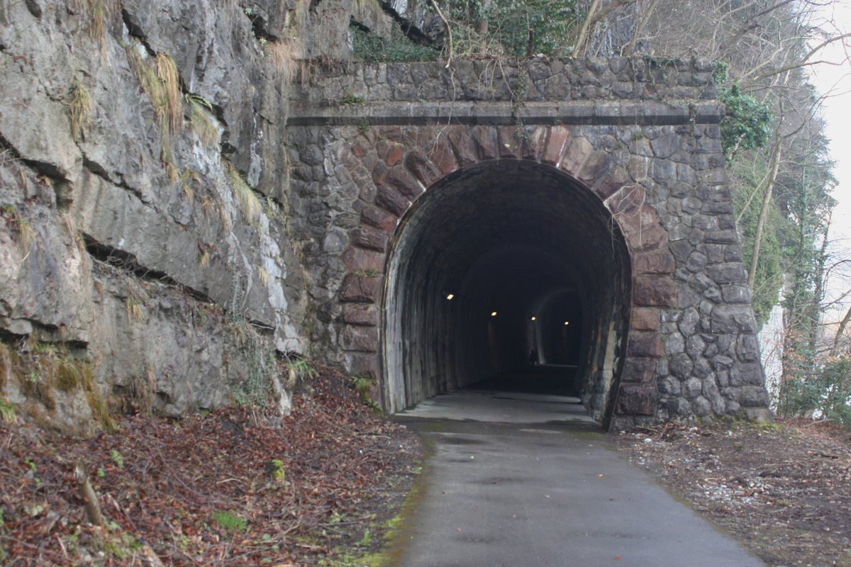 Einen Viertel des Ofeneck - Weisswandtunnels dient heute dem Fahrrad- und Wanderweg von Weesen nach Mühlehorn, wie das Ostportal auf dieser Aufnahme sehr deutlich zeigt.