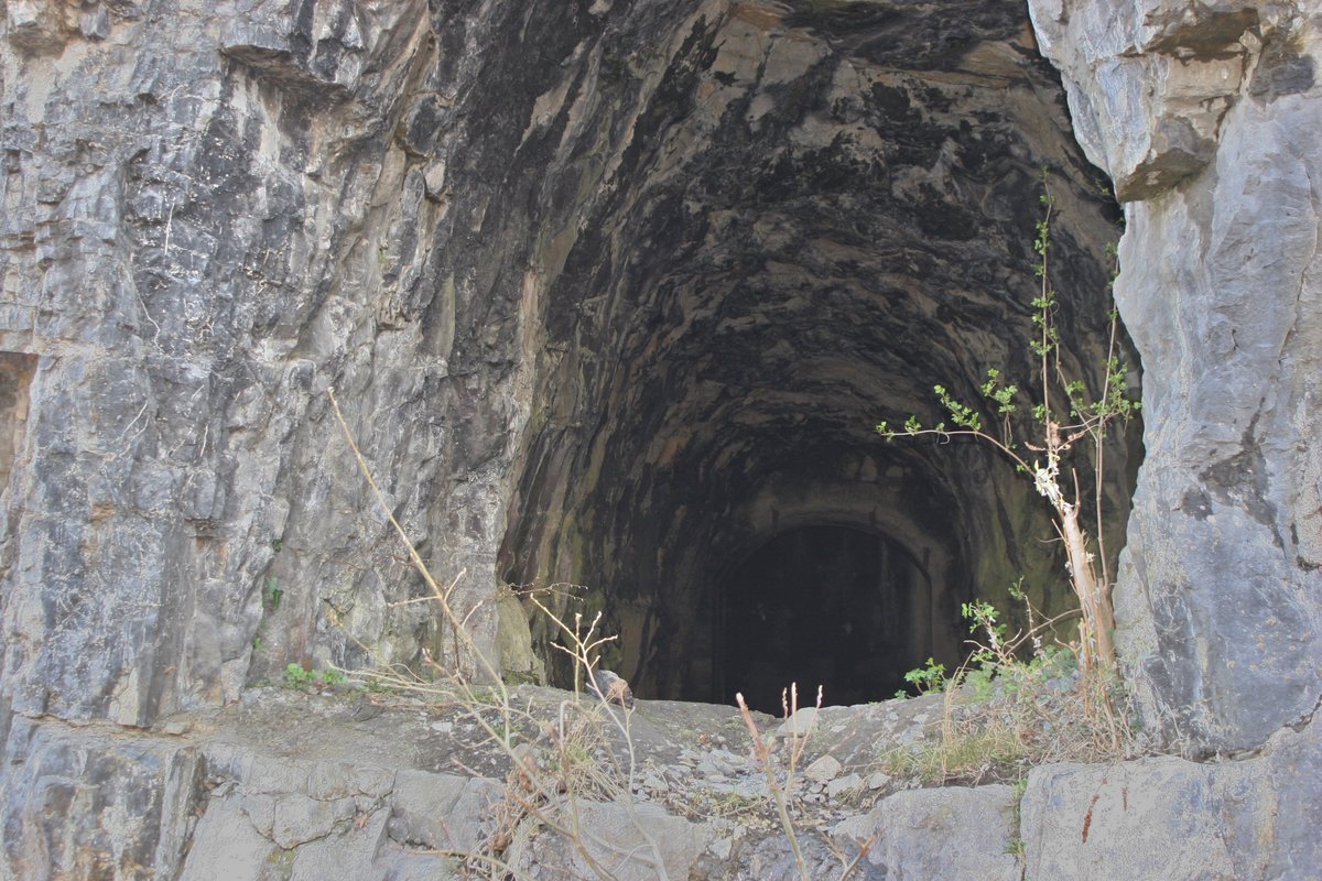 Ein Blick zu einem Zwischenstollen zum Ofeneck - Weisswandtunnel, der heute teilweise auch als Fluchtstollen des Autobahntunnels der A 3 dient.
