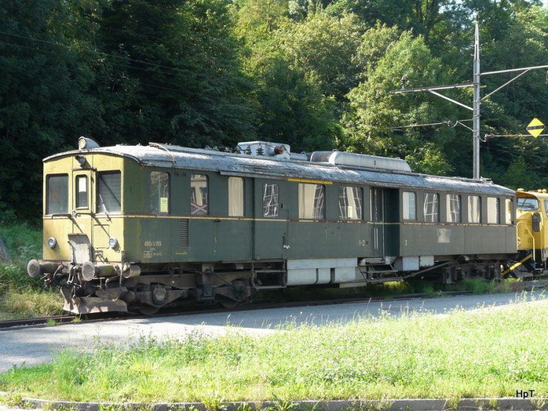 Der ABDe 2/4 155 (1931/46 umgebaut aus Gleichstromtriebwagen FMA BCFe 4/4 5) ex. GFM (heute TPF) abgestellt beim Bahnmuseum Kerzers in Kallnach, 10.03.2014. Simon Bütikofer