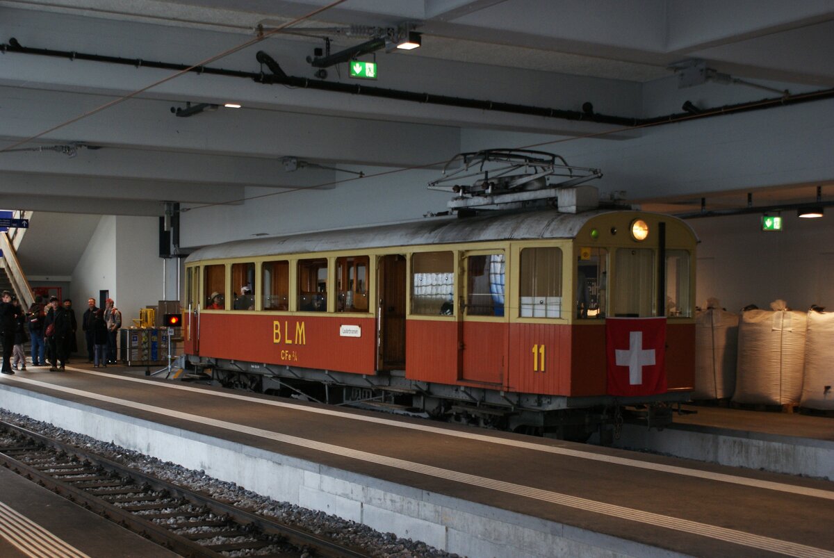 BLM Bergbahn Lauterbrunnen-Mürren: CFe 2/4 11 (SIG/MFO 1913), Mürren, 20.Oktober 2024 (letzter Verkehrstag dieses Triebwagens vor seinem Abtransport und der Abgabe an das Verkehrshaus der Schweiz in Luzern). Gerd Weber