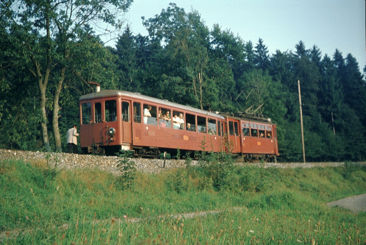 Uetlibergbahn Zürich__Uetliberg-Tram Ce 2/2 Nr.22 (ex Nr. 2) mit Bw Nr.213 (ex 63) anläßlich einer Sonderfahrt beim Fotohalt auf der Strecke.__14-09-1974 Klaus-Erich Lisk