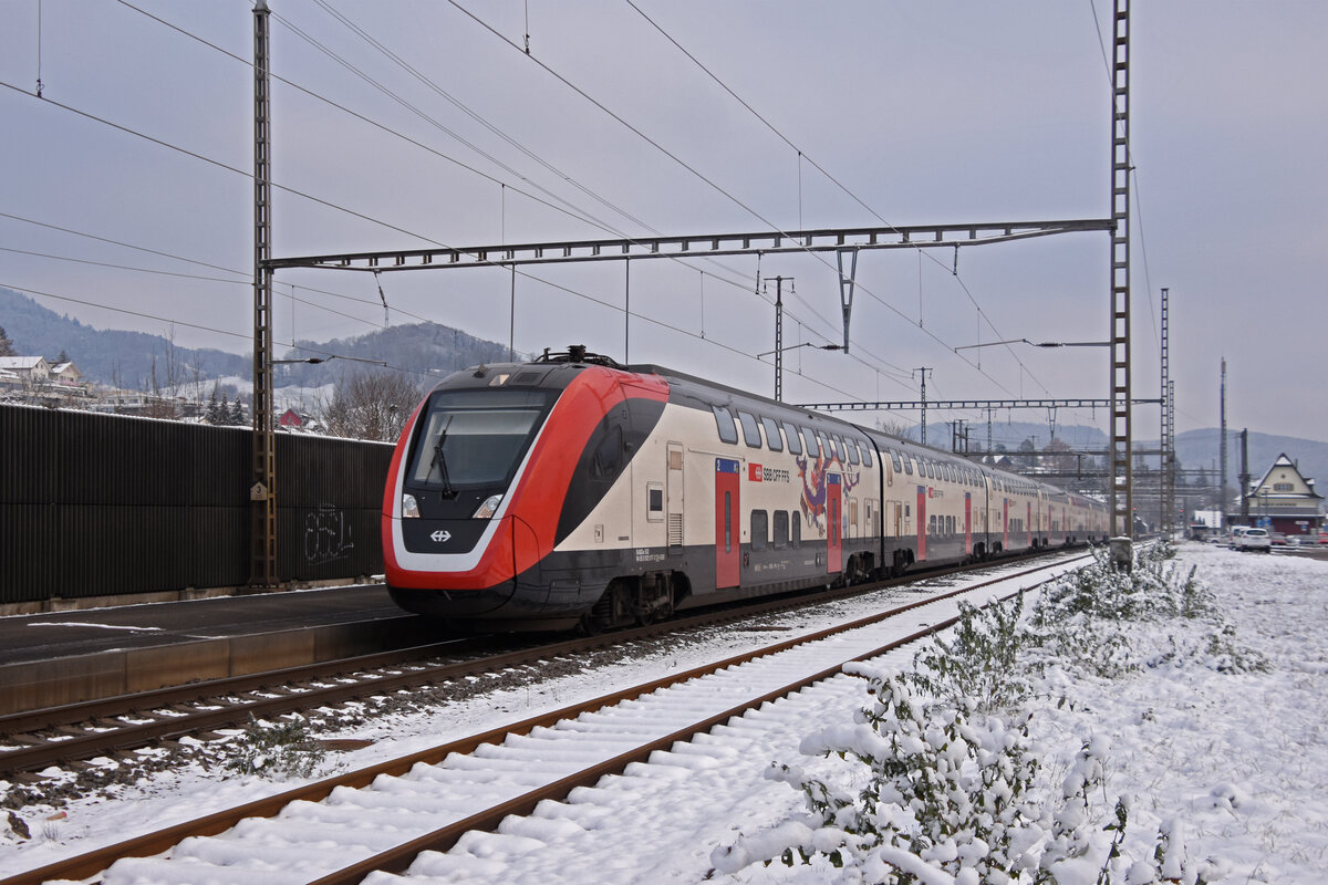 RABDe 502 006-5 Twindexx durchfährt am 26.01.2023 den Bahnhof Rupperswil.