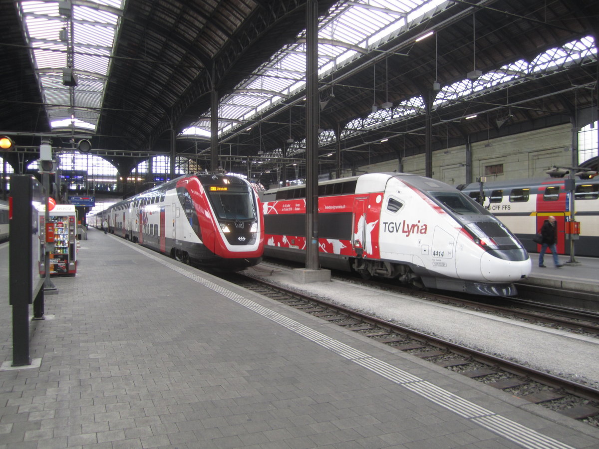 RABDe 502 010 als IR 2271 nach Zürich HB und TGV-POS 4414 ''Fête des vignerons 2019'' als TGV 9216 nach Paris in Basel SBB