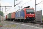 ChemOil 482 028-8 (Tochterunternehmen von SBB Cargo mit Sitz in Basel) mit einem Containerzug in Höhe der Zusammenführung von alter Rheintalbahn und der Verlängerung des Katzenbergtunnels. 20.06.2015 Thomas Eisenmann