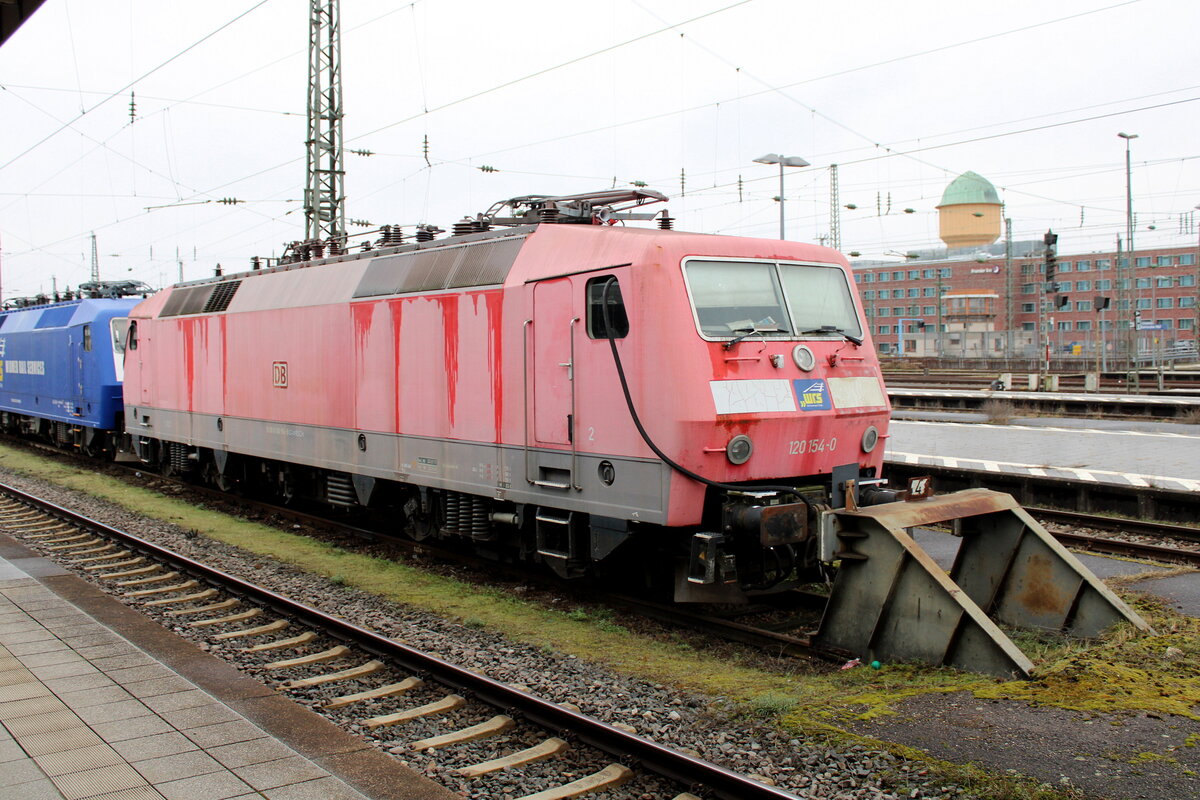 In Karlsruhe Hbf warteten am 06.02.2025 die WRS Loks 120 154-0 + 120 145-8 und 120 204-3 auf ihr weiteres Schicksal.