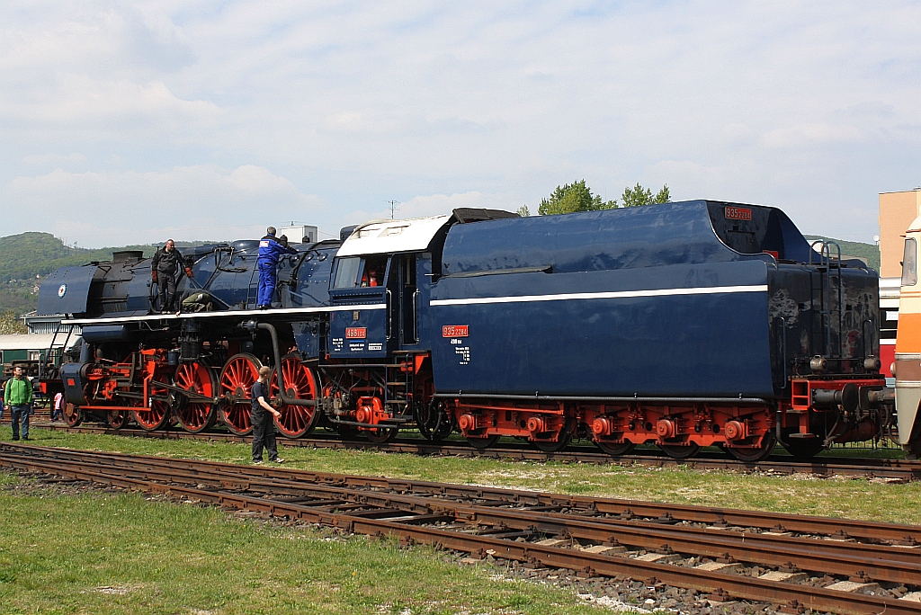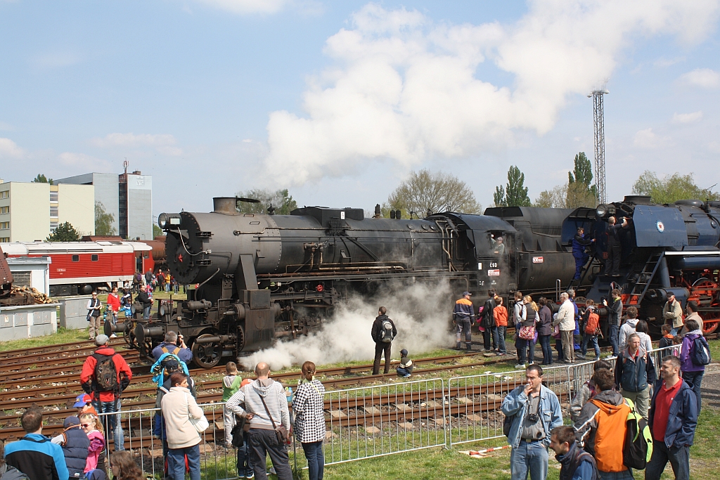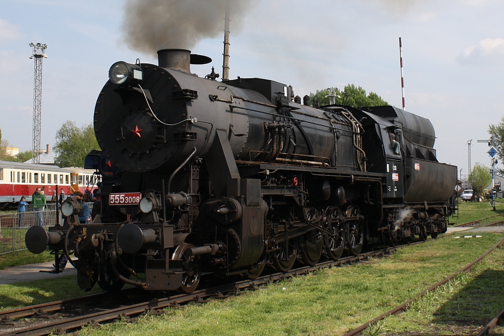 555 3008, 498 104 (rechts) und jede Menge Publikum zur Saisoneröffnung am 12.April 2014 im ZSR ´ELEZNÍC MÚZEJNO-DOKUMENTAČNÉ CENTRUM in Bratislava Východ.