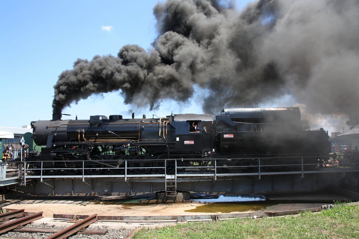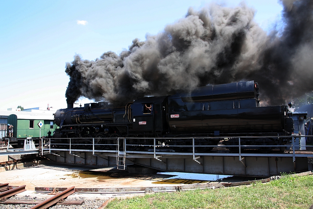 Zum Gaudium der Fotographen öffnete der Heizer der CSD 555 3008 am 17.Juni 2018 beim "RENDEZ 2018" im ZSR Museum Bratislava Vychod den Ölbrenner. Karl Seltenhammer