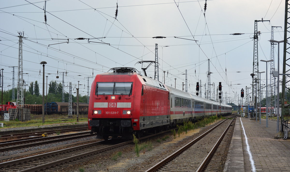101 029-7 fährt mit dem IC145 nach Berlin Gesundbrunnen in Stendal ein.