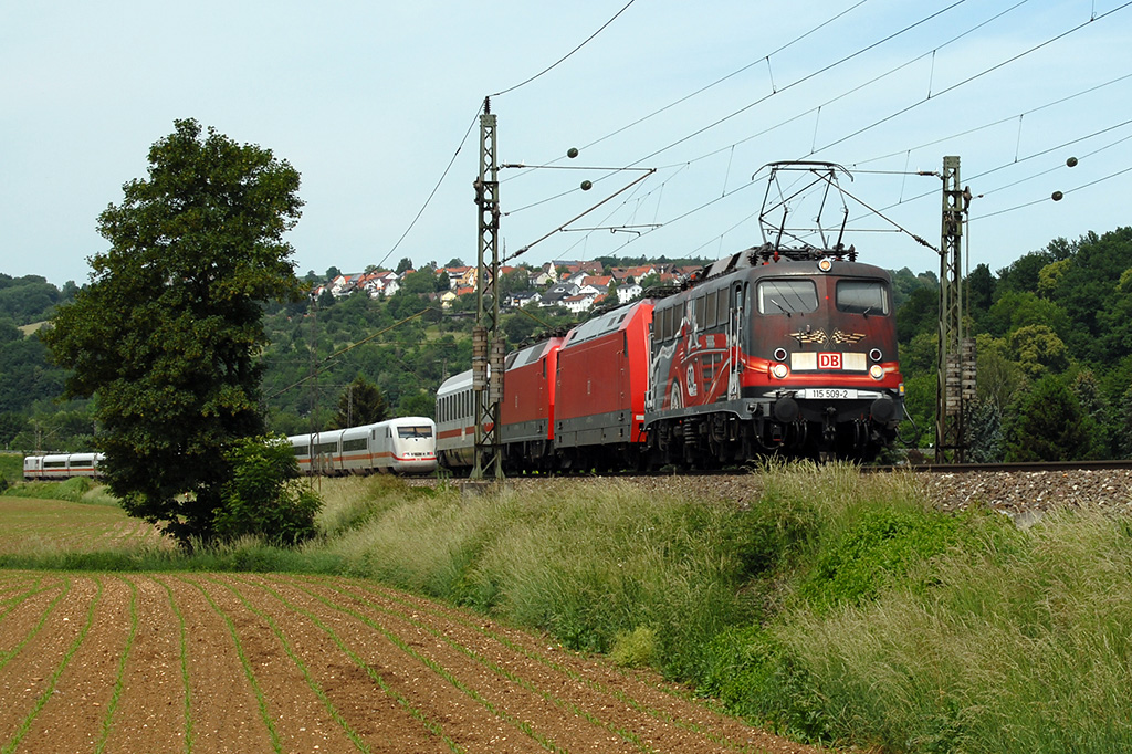 101 029-7 zieht einen IC in Richtung Bad Hersfeld. Aufgenommen zwischen Mecklar und Ludwigsau-Friedlos am 15.05.2015. Und Gruß zurück an den Tf ;)