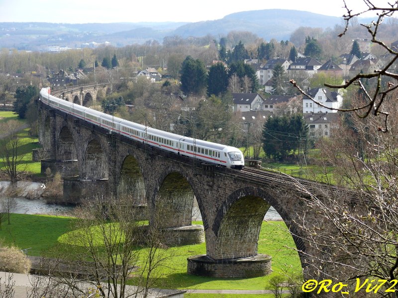 IC 2028 mit 101 077-5. Witten, Ruhrviadukt am 28.03.2008.