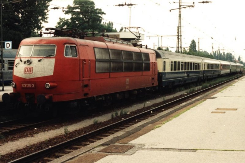 103 129-3 mit EC 147 Schiphol-Köln Hbf auf Bahnhof Emmerich am 22-07-1994. Bild und scan: Date Jan de Vries.