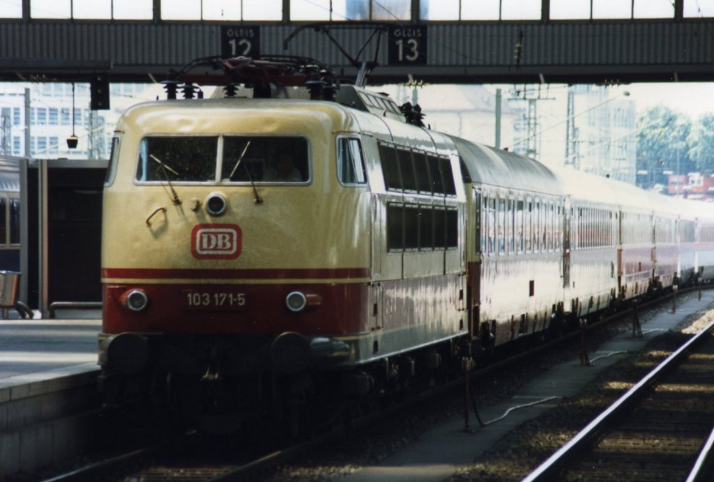 103 171-5 mit ihrem IC im Hauptbahnhof München 1991