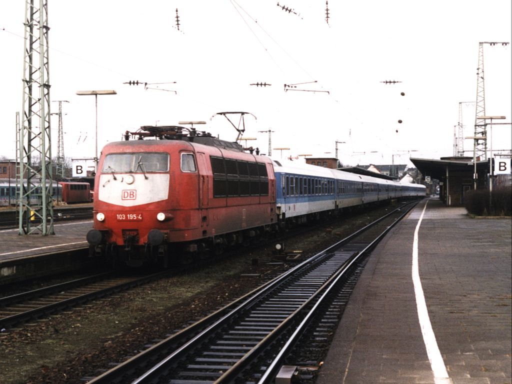 103 195-4 mit IR 2343 “Havelsee” Schiphol (die Niederlande)-Berlin Ostbahnhof auf Bahnhof Rheine am 16-01-2000. Bild und scan: Date Jan de Vries. Date Jan de Vries
