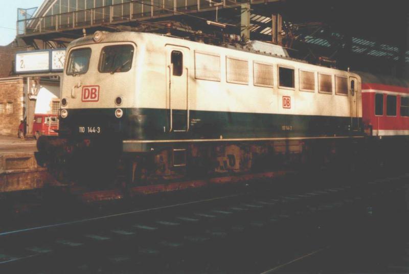 110 144-3 mit RB 21 in Aachen Hbf Richtung Mönchengladbach,im Herbst 2002.