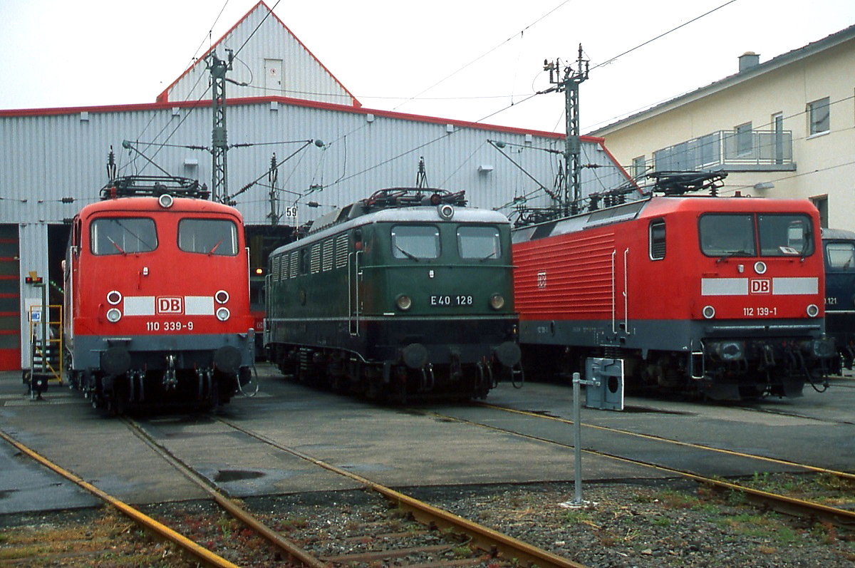 Bei einem Tag der Offenen Tür um 2000 präsentierten sich 110 339-9, E 40 128 und 112 129-1 im Bw Düsseldorf der Öffentlichkeit