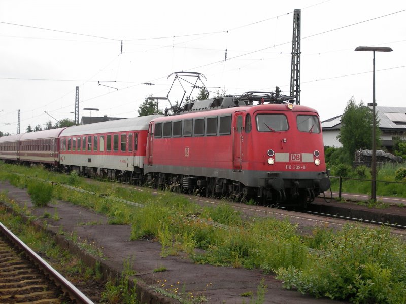 110 339-9 mit auf den Weg Lourdes mit kurzem Halt in Breitengüßbach zur Ersatzteilaufnahme. 21.05.2008