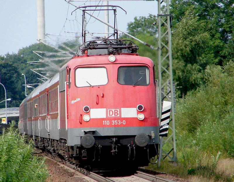 110 353-0 vor dem NZ1949 aus Hagen. Noch 5 Minuten bis zum Stralsunder Bahnhof. (14.08.05)