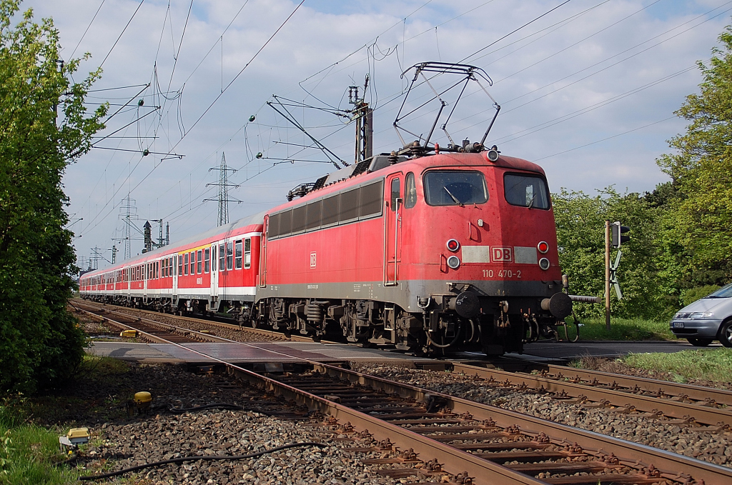 110 470-2 mit einem RE4 aus Düsseldorf auf dem Weg in die Abstellgruppe nach Rothe-Erde, 3.6.11