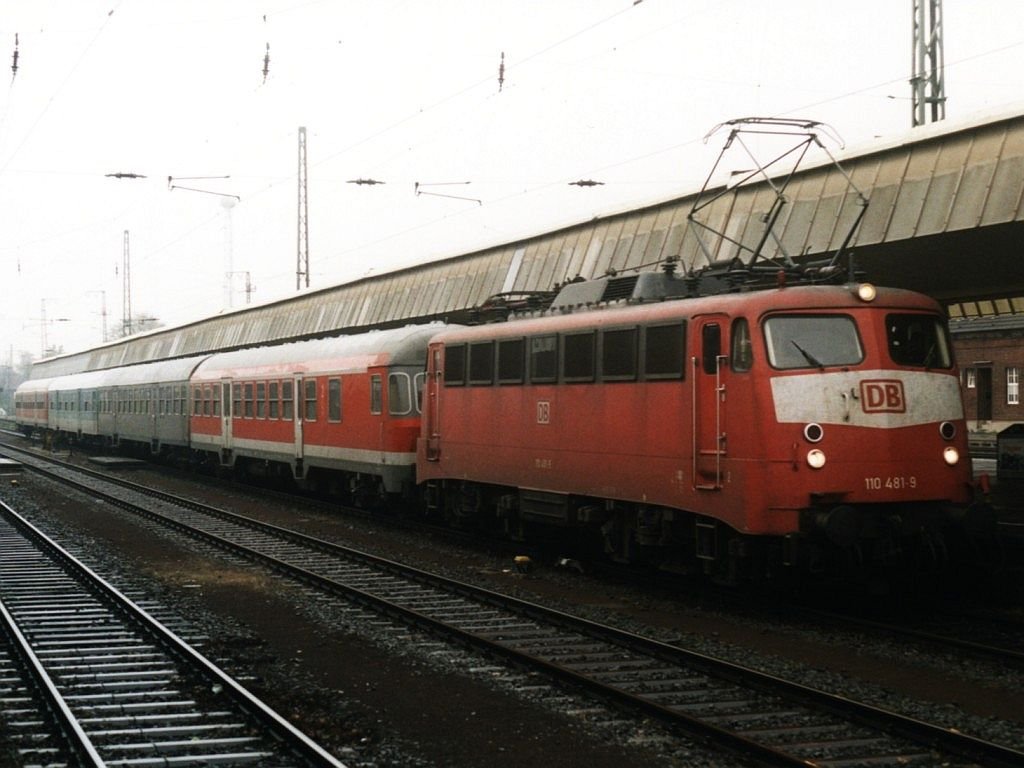 110 481-9 mit eine bunte RB 42 Haard-Bahn 12233 Essen-Münster auf Münster Hauptbahnhof am 28-10-2000. Bild und scan: Date Jan de Vries. Date Jan de Vries