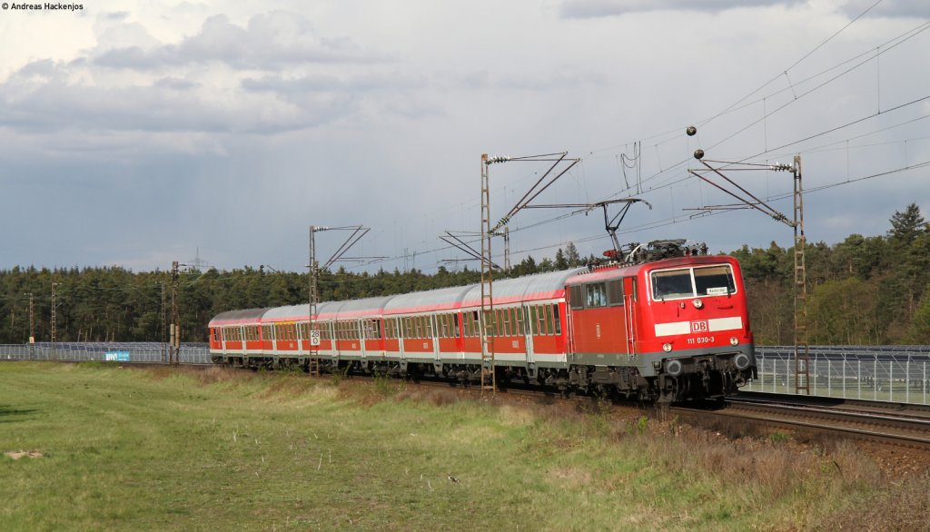 111 030-3 mit der RB 38861 (Ludwigshafen(Rh)Hbf-Karlsruhe Hbf) bei Waghäusel 19.4.12