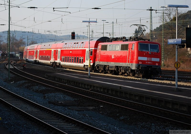 33 Minuten Marburg Hauptbahnhof (III). 111 086-4 hat wie immer schwer zu kämpfen mit ihren 6 Dostos nach Kassel. (03. April 2004, 18:23)