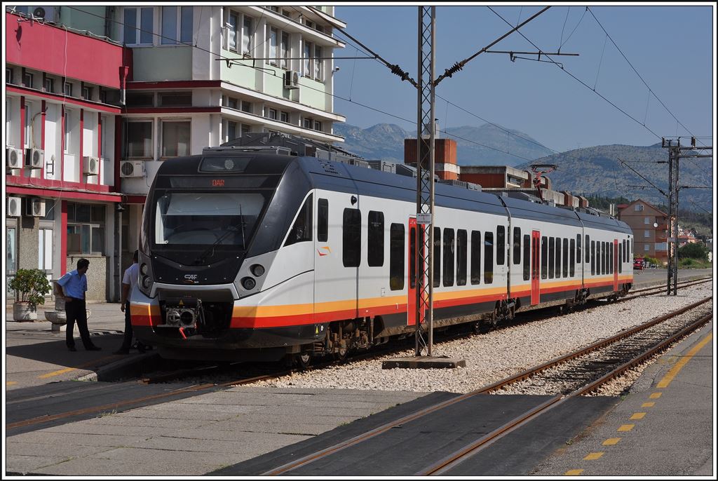 Regionalzug 7103 mit CAF 6 111 101-9 Civity nach Bar steht abfahrbereit in Podgorica. (14.08.2014)