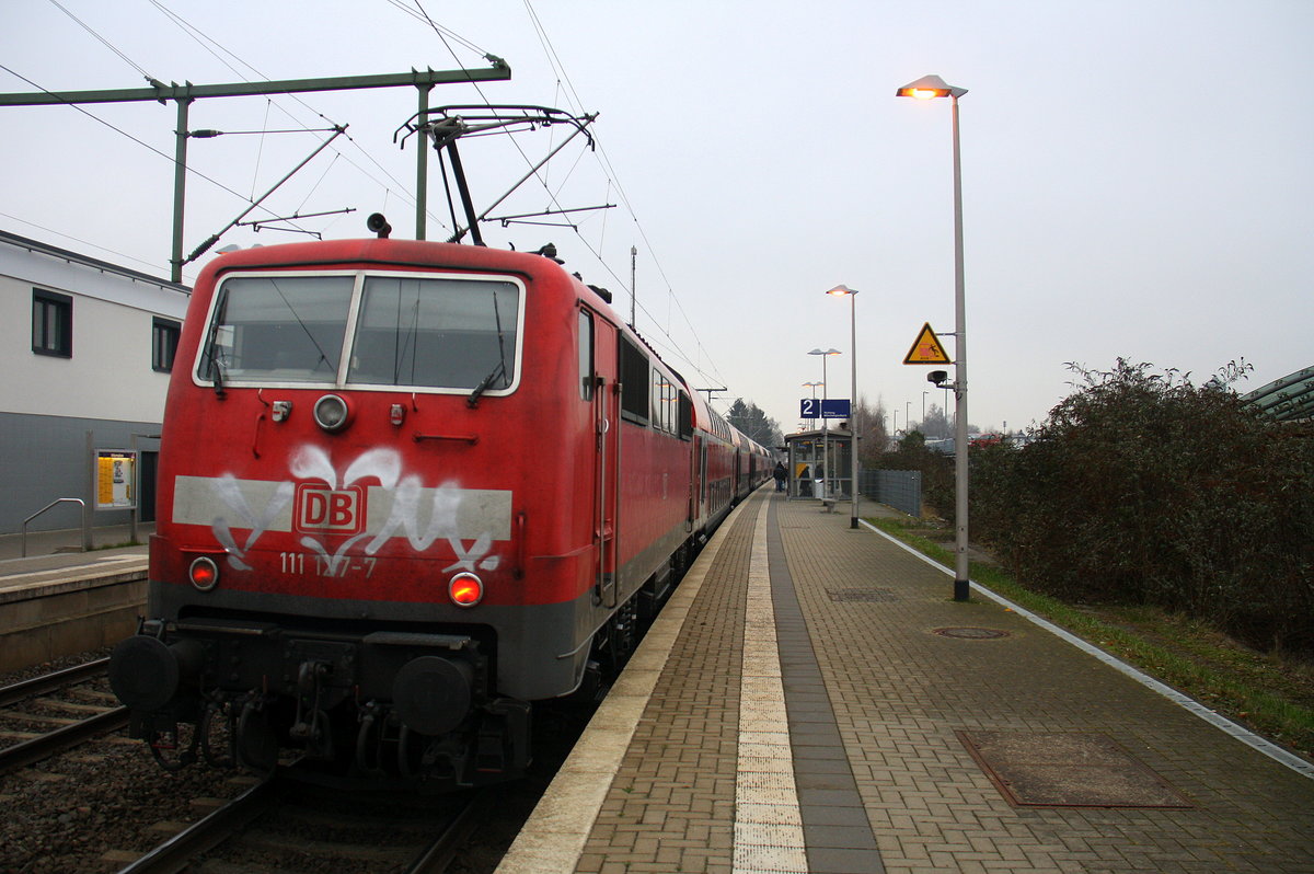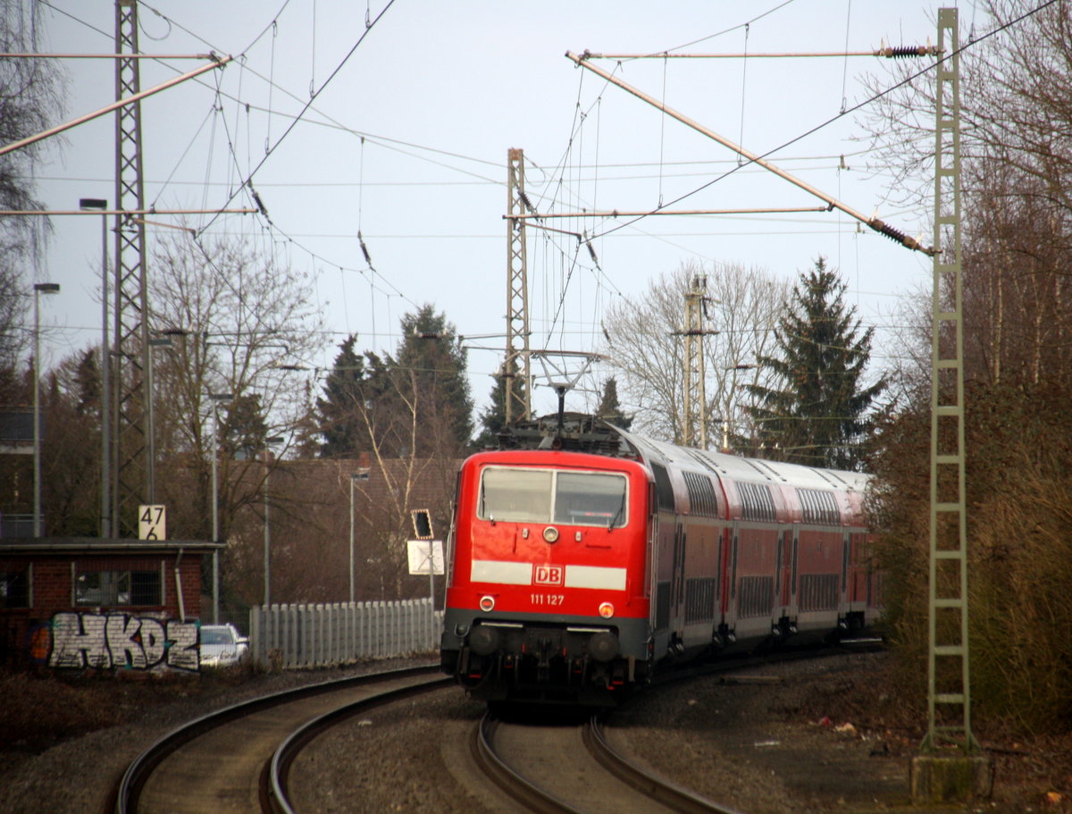 Ein Nachschuss von der 111 127-7 DB steht mit dem RE4 von Aachen-Hbf nach Dortmund-Hbf.