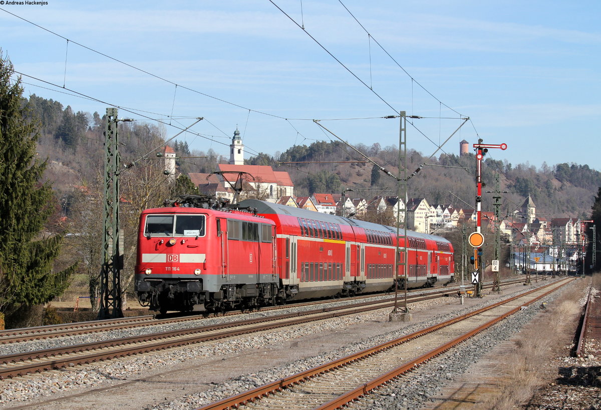 111 164-0 ( 91 80 6111 164-0 D-DB ), Krupp 5471 / AEG 8997, Baujahr 1981, Eigentümer: DB Regio AG - Region Baden-Württemberg, Fahrzeugnutzer: Regionalverkehr Württemberg, [D]-Stuttgart, Bh Stuttgart, 28.02.2014, Waiblingen Thomas M. Spitzner