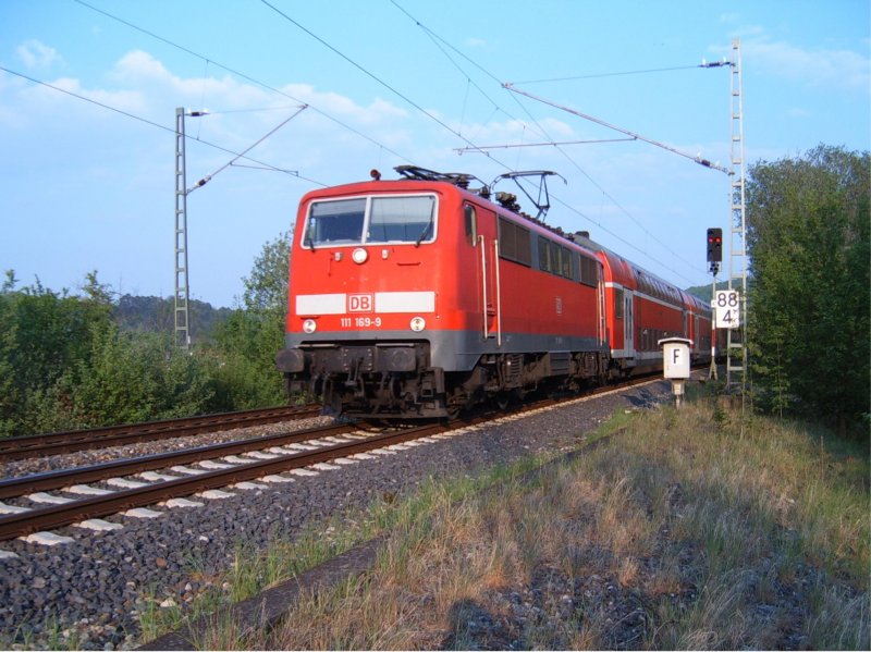 RE 4931 mit Schublok 111 169-9 kruz hinter Göppingen am 16.9.07