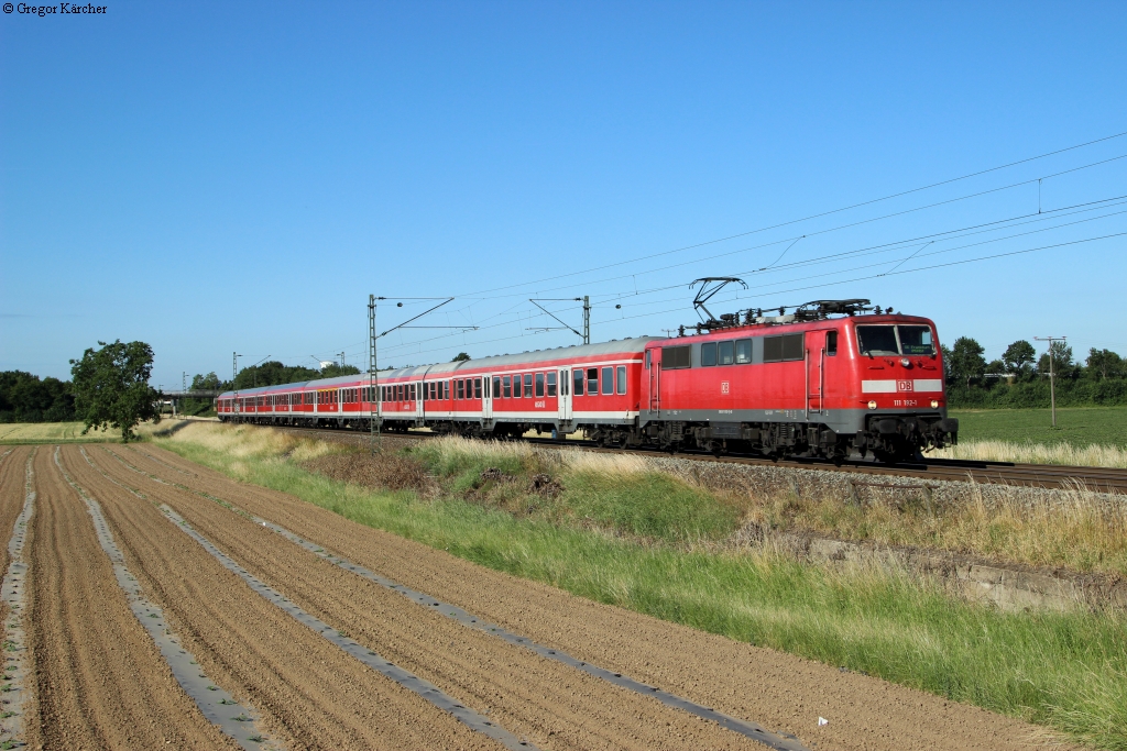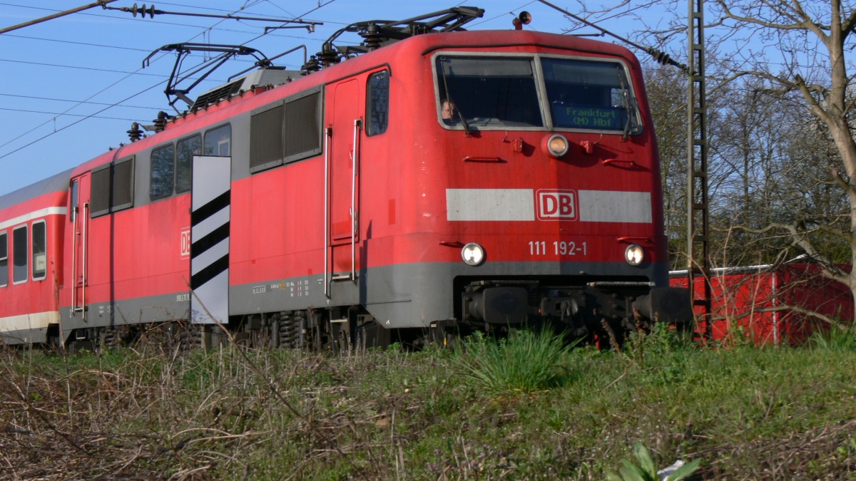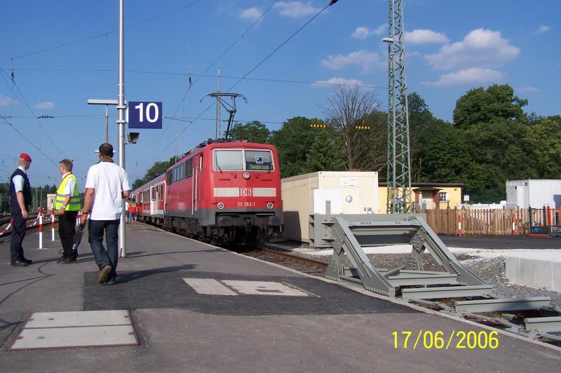 Nicht nur S-Bahnen bedienten an den Spieltagen der FIFA-WM in Frankfurt den Bahnhof Stadion, sondern es pendelten auch Wendezüge zwischen Frankfurt (Main) Hbf und Frankfurt (Main) Stadion. Hier ein solcher mit 111 192-1. Olaf Just