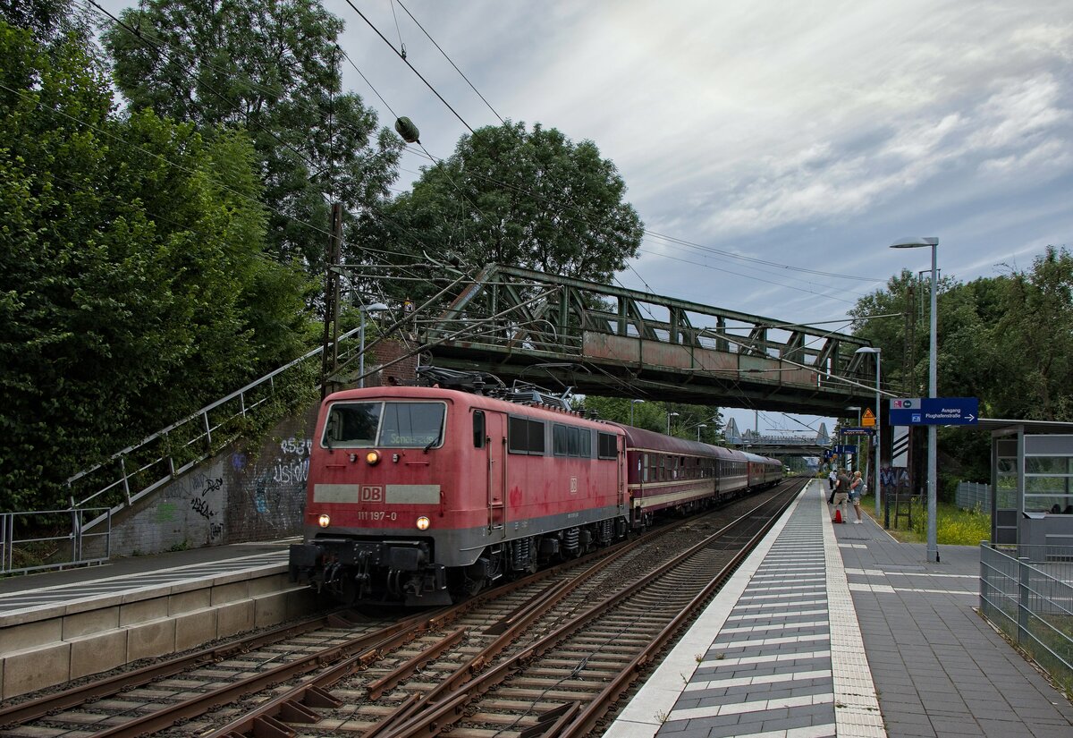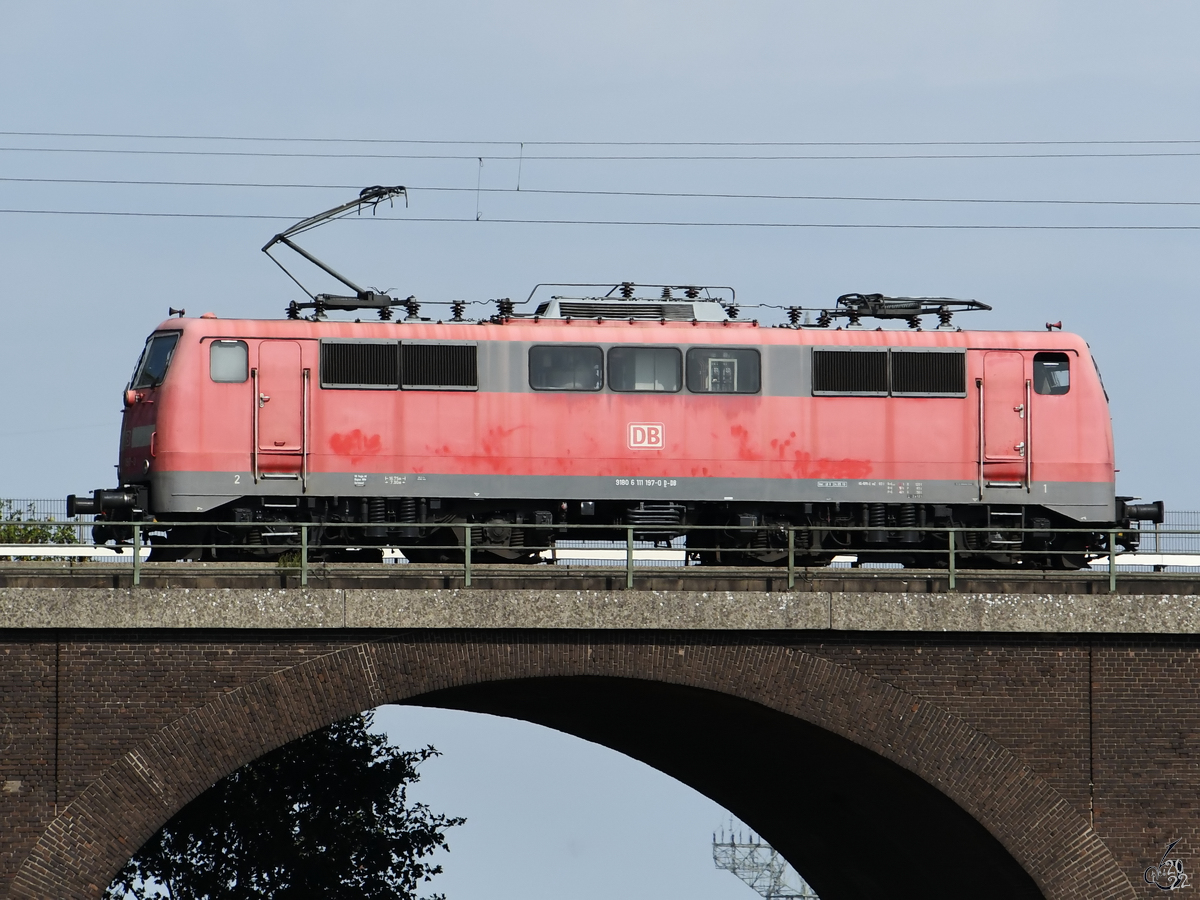 111 197-0 DB Zieht einen RE4 von Aachen-Hbf nach Dortmund-Hbf kommt aus Richtung Aachen-West,Laurensberg,Richterich, und fährt durch Kohlscheid in Richtung Herzogenrath,Mönchengladbach.