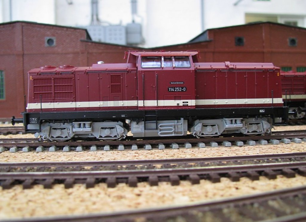 Diesellokomotive BR 114 252-0 -DR- in Spur H0, fotografiert im Mecklenburgisches Eisenbahn- und Technikmuseum (Bw)Schwerin 27.09.2009