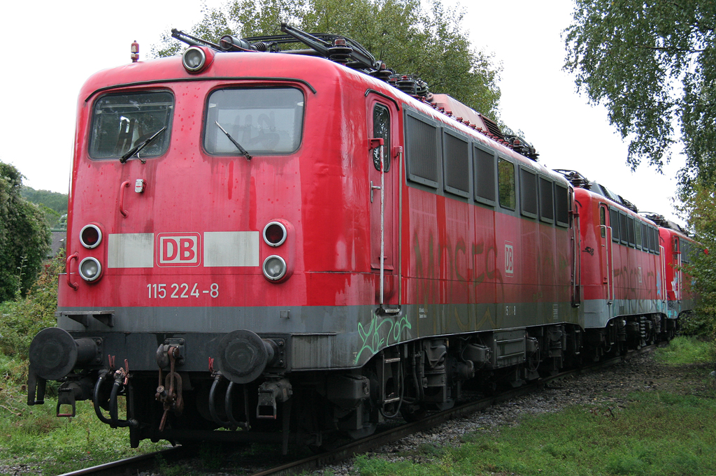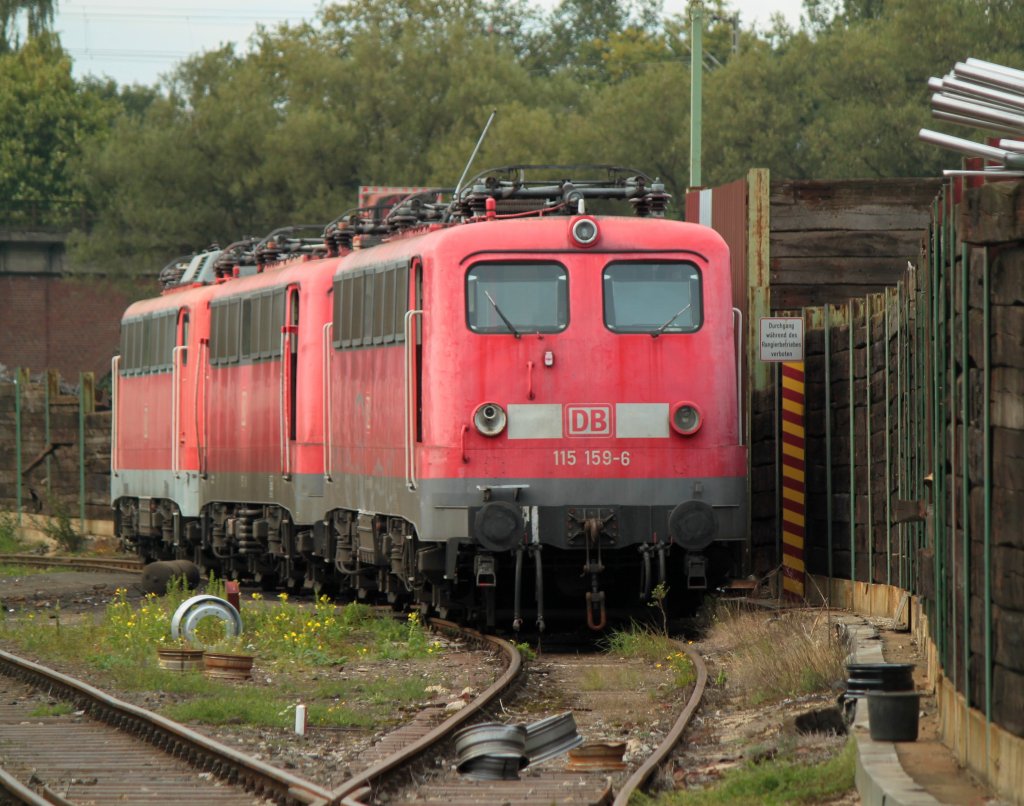 115 159-6, 115 230-5 und 115 148-9 warten am  20.09.2011 beim Schrottverwerter in Eschweiler-Aue auf den Schneidbrenner.