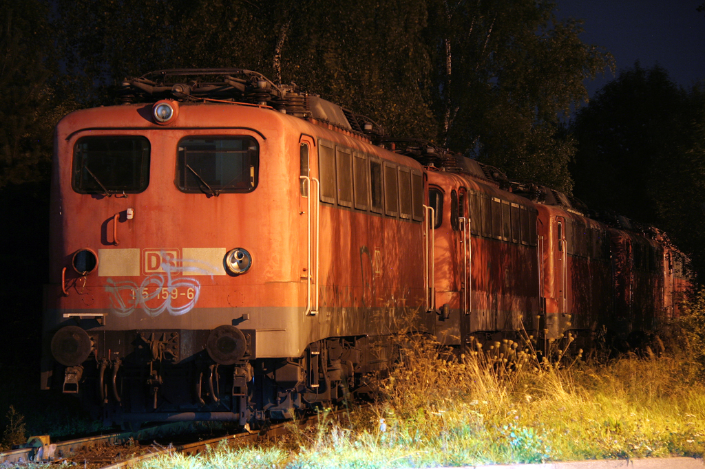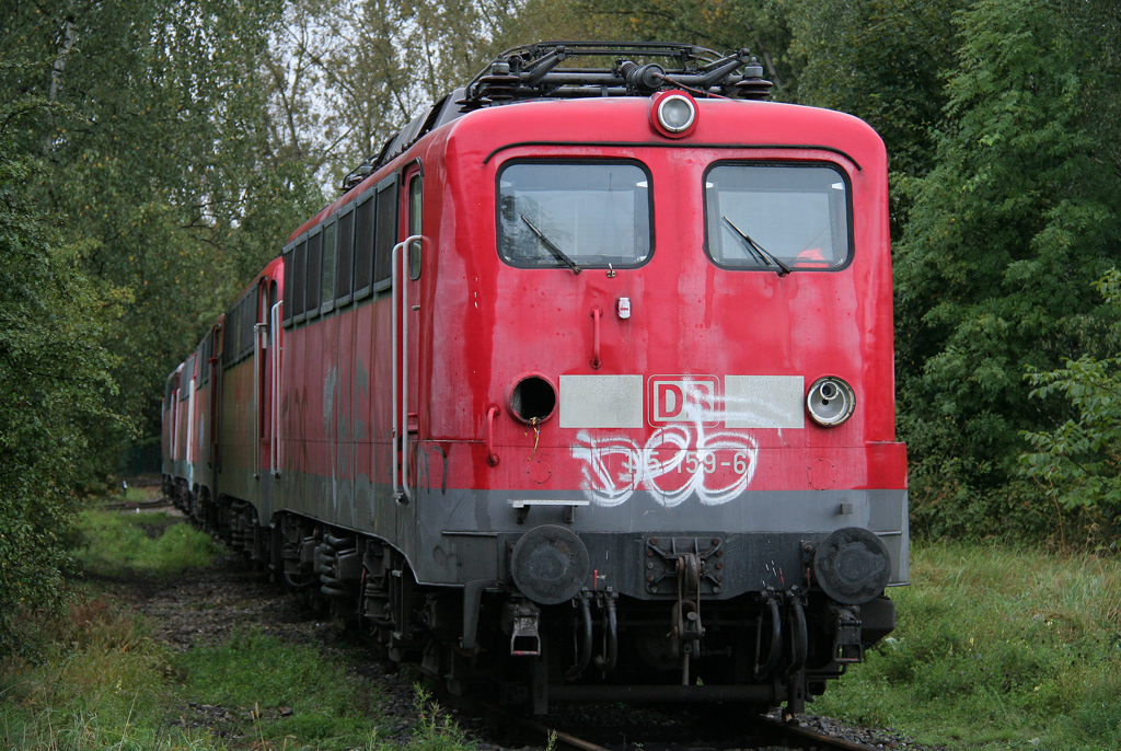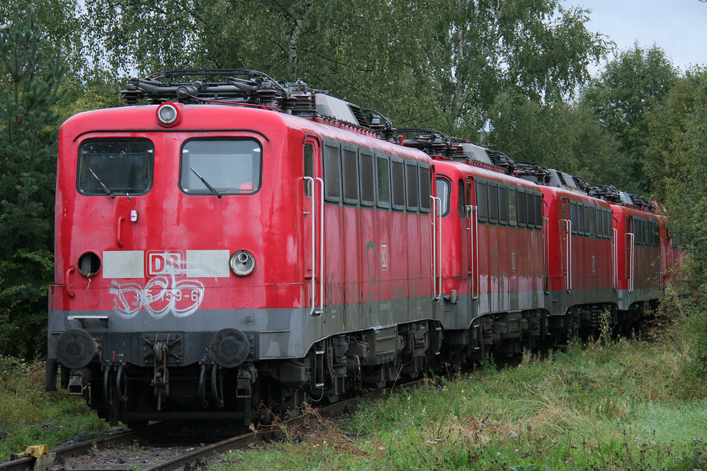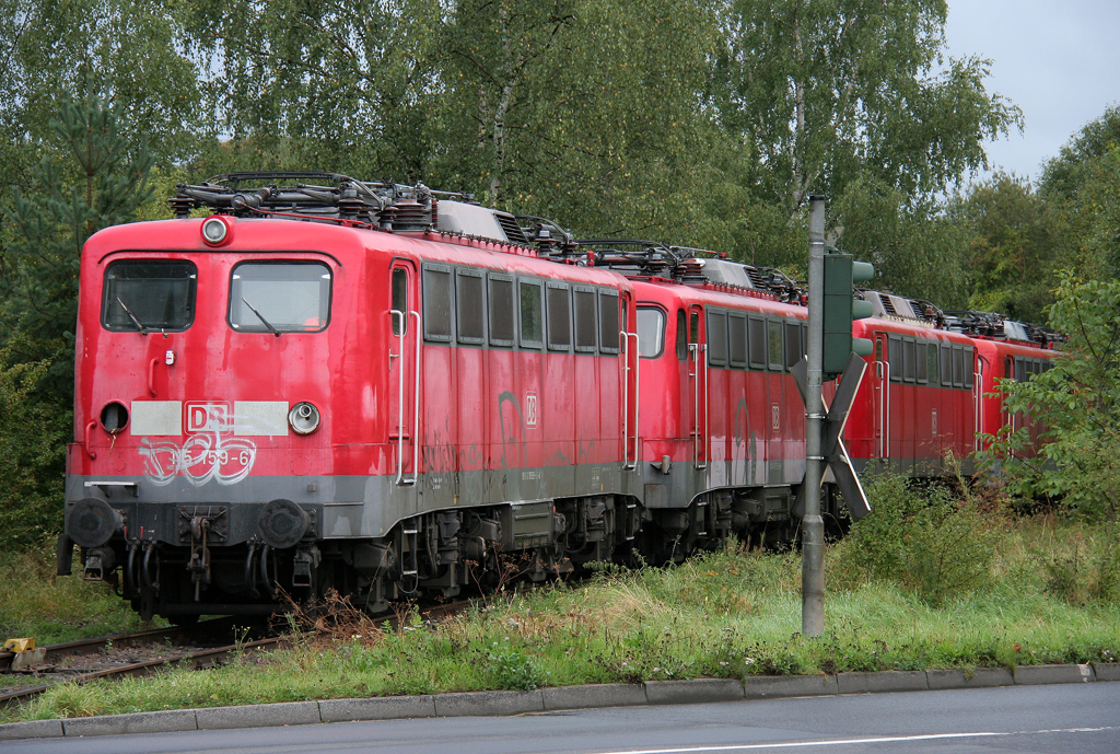 115 159-6, 115 230-5 und 115 148-9 warten am 20.09.2011 beim Schrottverwerter in Eschweiler-Aue auf den Schneidbrenner.