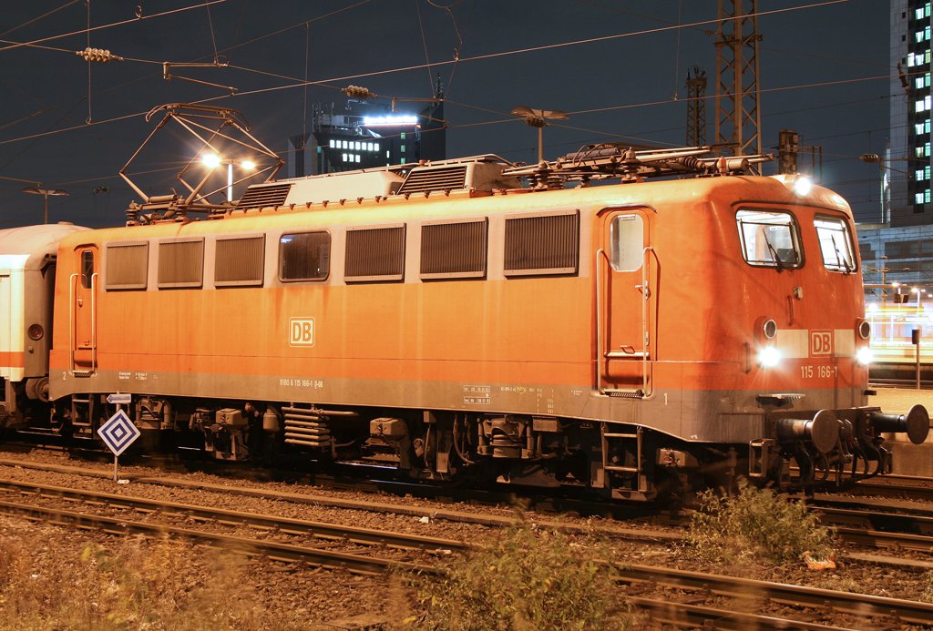 Die 115 166-1 steht mit ihrem Schadzug/PBZ für eine Weile in Düsseldorf HBF, aufgenommen am 13.11.2009 Besten Gruß an den freundlichen Tf, der dieses Bild möglich machte Eric Otten